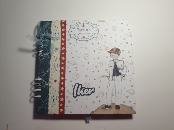 Álbum mixto Lunas para Comunión niño, para firmas y fotos. Capacidad para 25 fotos de 10x15cm. Lleva 4 hojas decoradas y 15 hojas para que puedan firmar tus invitados.